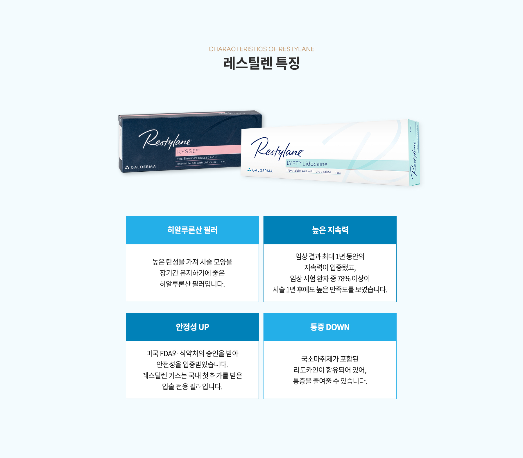 보톡스(톡신) 시술은 발달된 근육을 수축시켜 라인을 매끈하게 하거나 표정주름을 완화하는 효과입니다. 필러(filler)는 단어의 뜻 그대로 채운다는 의미로, 얼굴의 부족한 볼륨을 채워주는 효과 이마/턱 끝/앞광대/볼/팔자/콧대/입술/애교/눈 밑 등 시술이 가능합니다.